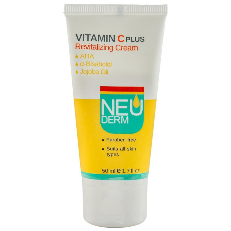 کرم ویتامین سی پلاس نئودرم علاوه بر خاصیت روشن کنندگی پوست، به دلیل دارا بودن ویتامین های A ،C و E موجب جوان سازی پوست نیز می شود. افزایش قوام پوست از طریق تحریک بازسازی کلاژن، از دیگر اثرات سودمند ویتامین C در ترکیب این محصول است. ویژگی های کرم جوان کننده ویتامین سی C پلاس نئودرم روشن کننده پوست کاهش لکهای ناشی از آفتاب جلوگیری از پیری زودرس پوست کمک به بازسازی پوست (کلاژن سازی و الاستین سازی) اثر آنتی اکسیدانی و ضد رادیکال آزاد حجم محصول: ۵۰ میلی لیتر