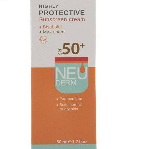 پوست اولین فاکتور زیبایی در هر چهره است و مراقبت از سلامت و زیبایی آن بسیار مهم است. بسیاری از امکانات موجود در طبیعت و در اطرافمان، هر کدام بگونهای میتوانند بر سلامت و زیبایی پوست اثر سوء گذارند. از اینرو استفاده از کرمهای ضد آفتاب برای محافظت از پوست بسیار ضروری است. یکی از انواع این کرمهای مناسب، ضد آفتاب «نئودرم» (Neuderm) مدل «هایلی پروتکتیو مکس تینتد » (Highly Protective SunScreen Max Tinted) در حجم 50 میلی لیتر است. این کرم با SPF50 حاوی عصاره آلفابیزابولول است که به این کرم خاصیت ضد التهاب بخشیده و از پیری زودرس پوست هم پیشگیری میکند. ترکیبات آن از بروز لکهای تیره و سرطان پوست جلوگیری خواهد کرد. همچنین دارای فیلترهایی برای جلوگیری از تاثیرات مضر اشعههای UVA و UVB آفتاب است. این محصول با قدرت بالا در محافظت از پوست دارای رنگ بژ تیره است. آلفابیزابولول ضمن سازگاری با پوست، اثر ضد التهابی دارد و همین امر تاثیر ضد آفتاب را بیشتر میکند. همچنین بر روی پوستی که در اثر تابش دچار التهاب شده باشد، اثری التیام بخش دارد. این کرم فاقد ماده نگهدارنده پارابن است. پارابنها گروهی از محصولات شیمیایی هستند که از ایجاد باکتری جلوگیری کرده و باعث افزایش طول عمر محصولات میشوند اما برای پوست و بدن مضر و آسیب رساناند. به همین علت این محصول آلرژی زا نخواهد بود. خرید و استفاده از این کرم پوست شما را در برابر اثرات بد تابش خورشید ایمن خواهد کرد.